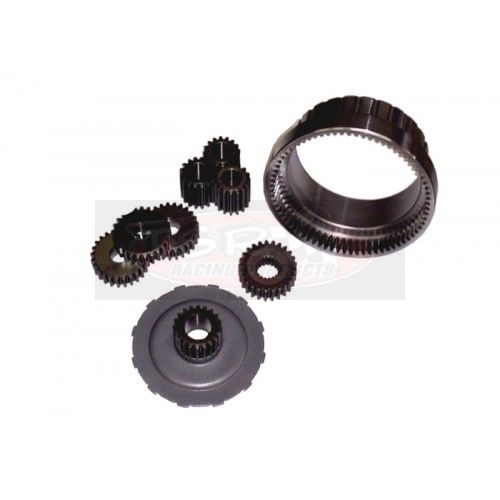 Includes 9310 straight cut gears, low sun gear flange and ring gear.