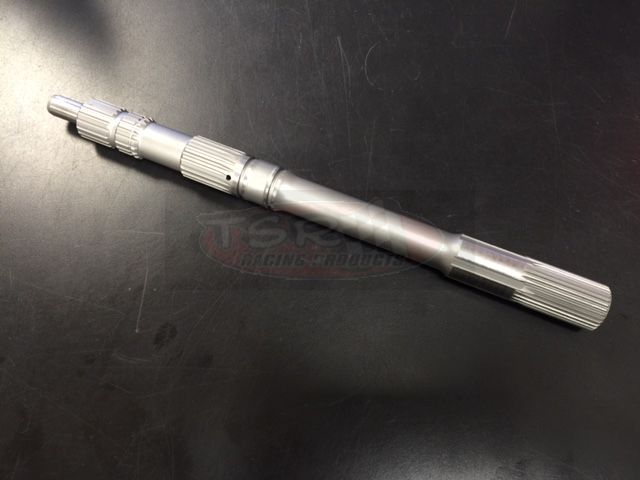 Year 62-73 PG 1.76 Input Shaft, Turbo Spline. Chrome-Moly input shaft for 1.76 style carrier (12 7/8). Has Turbo spline and features a grooved journal for improved fluid flow. Recommended for up to 800 HP.