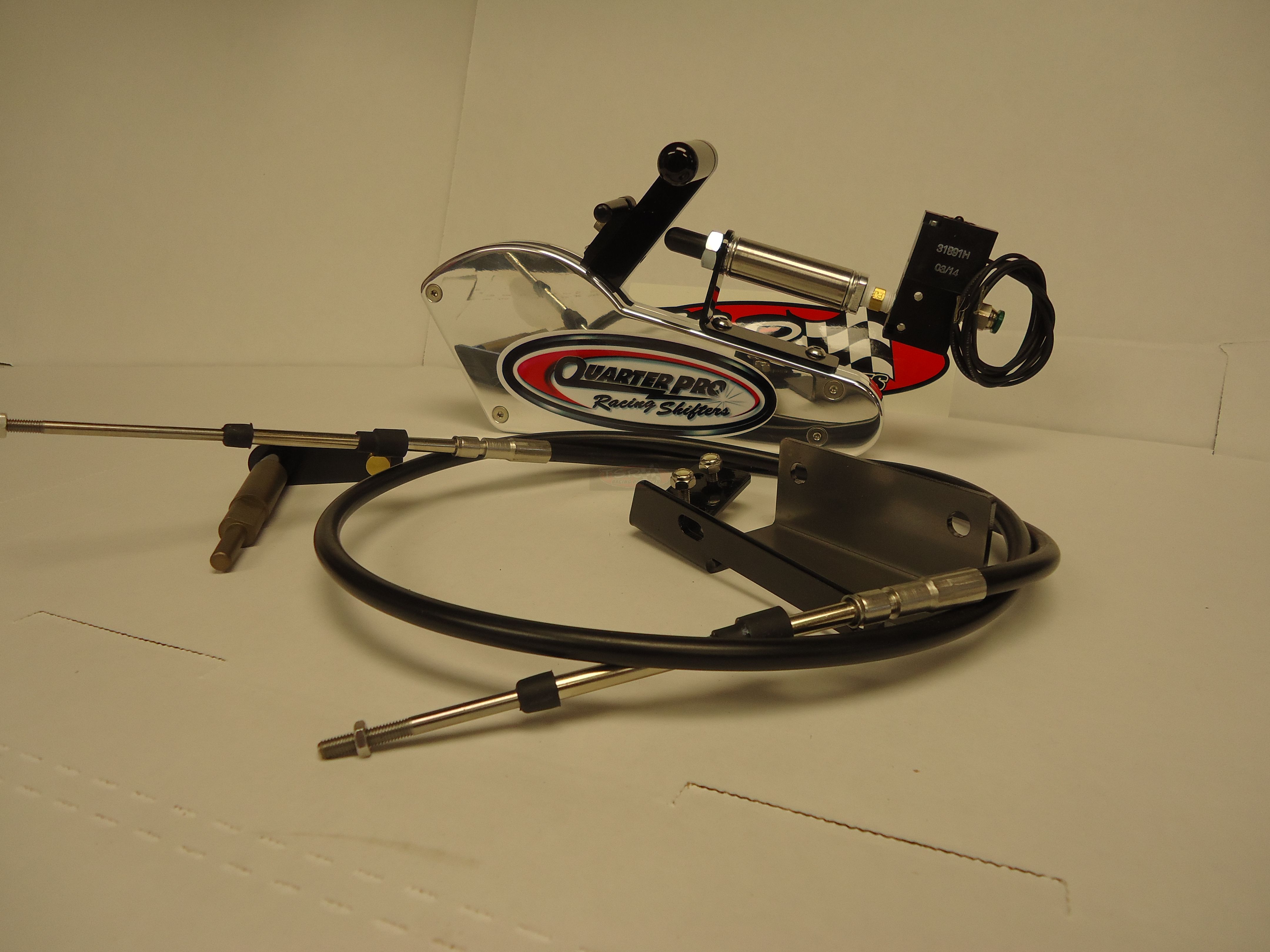 Year 62-73 MRC CO2 operated shifter. The Quarter Pro is very compact‚ measuring only 10” long‚ 8” high and 1” thick. Features billet aluminum construction‚ rear exit cable‚ shift lever‚ pan bracket & hardware. Can be changed at a later date to electric operation. Your choice of 5’ or 11’ cable‚ please specify.Note: This shifter is availble in left hand operation as well‚ special order; allow 3 weeks delivery. Please specify below.